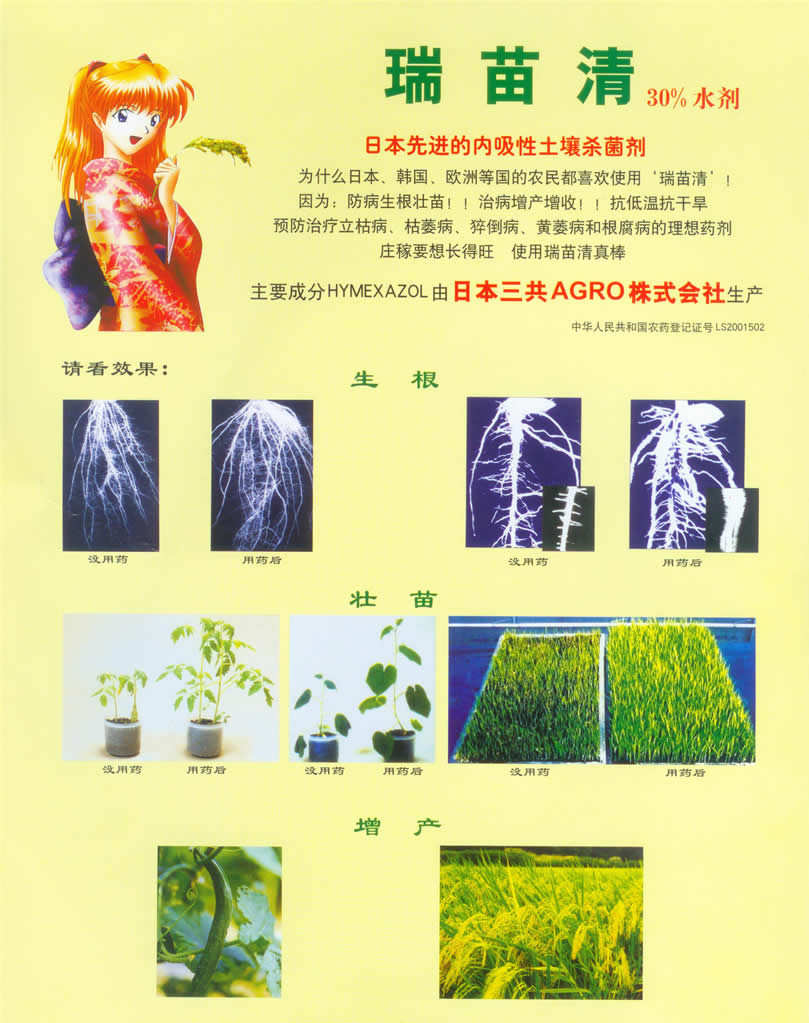 | 瑞苗清可以提高作物的抗逆性。抗干旱、抗低溫、抗冷害能力及抗病害能力。 |