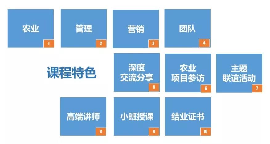 2018年7月首期特訓(xùn)營面向合作伙伴正式推出,金正大商學(xué)院聯(lián)合和君商學(xué)院及北大清華總裁班特聘教授科學(xué)打造課程體系,即產(chǎn)業(yè)大勢、營銷策略、經(jīng)營管理和游學(xué)交流四大模塊。讓學(xué)員從產(chǎn)業(yè)大勢中洞察轉(zhuǎn)型創(chuàng)新的方向,從營銷策略中汲取優(yōu)秀實戰(zhàn)經(jīng)驗,從全面經(jīng)營管理中領(lǐng)悟管理的本質(zhì)和法寶,從游學(xué)交流中掌握品牌農(nóng)產(chǎn)品運營模式。