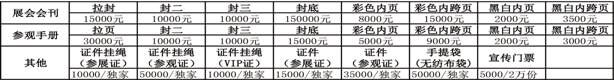 標準展位¥4,500元/個; 雙開口展位¥4,700元/個。