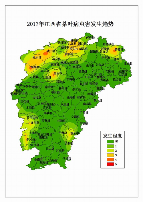 2、氣象條件:去冬今春氣溫偏高,有利于茶樹病蟲害越冬,氣象部門預(yù)測(cè)3-5月我省雨日偏多,利于茶小綠葉蟬、茶尺蠖、茶炭疽病的發(fā)生。