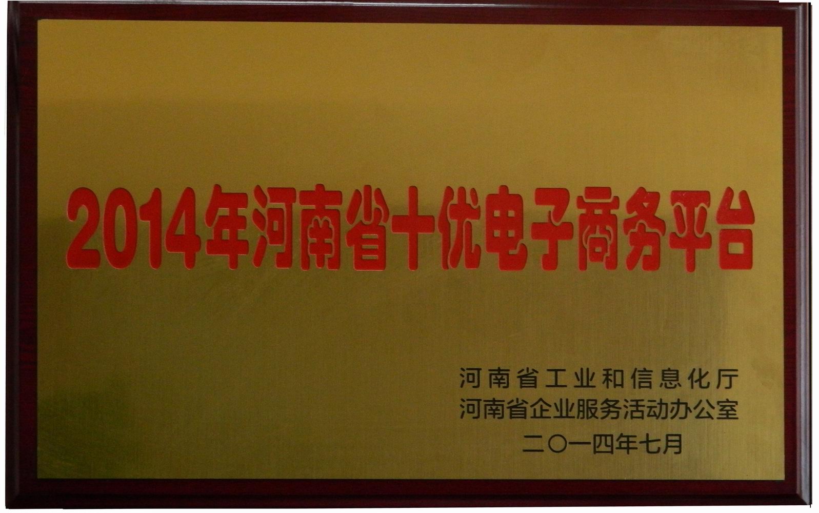 6月30日,省工業(yè)和信息化廳下發(fā)《關(guān)于公布2014年河南省十優(yōu)電子商務(wù)平臺的通知》,中華糧網(wǎng)、企匯網(wǎng)、焙友之家、農(nóng)資網(wǎng)、金馬鋼鐵網(wǎng)、回家網(wǎng)、鮮易網(wǎng)、聚寶庫、瑜伽網(wǎng)、淘寶網(wǎng)特色中國河南館等10個電子商務(wù)平臺入選其中,成為2014年全省10優(yōu)電子商務(wù)平臺。