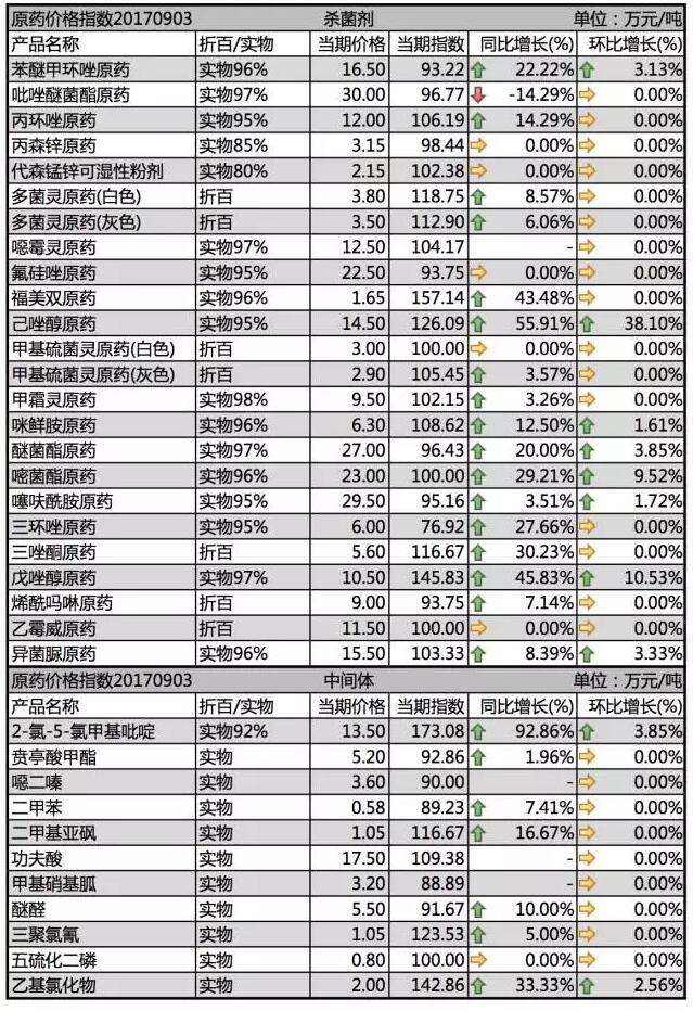 9月初國(guó)內(nèi)農(nóng)藥殺菌劑價(jià)格行情