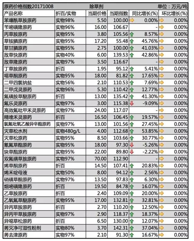 10月初國內(nèi)農(nóng)藥除草劑劑價格行情