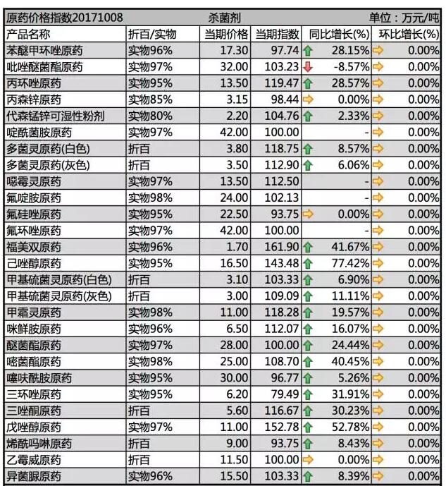 10月初國內(nèi)農(nóng)藥殺菌劑劑價(jià)格行情