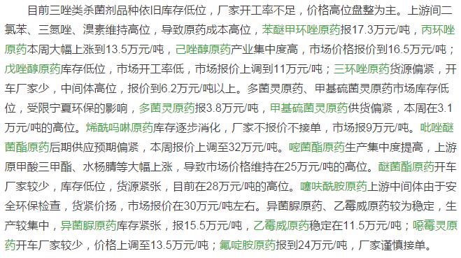 9月下旬國內(nèi)農(nóng)藥原藥殺菌劑價(jià)格行情