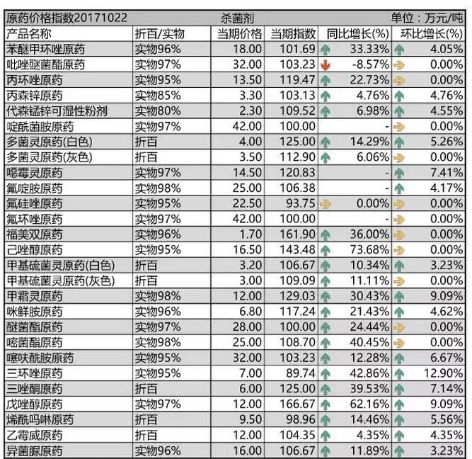 10月下旬農(nóng)藥原藥殺菌劑價(jià)格行情