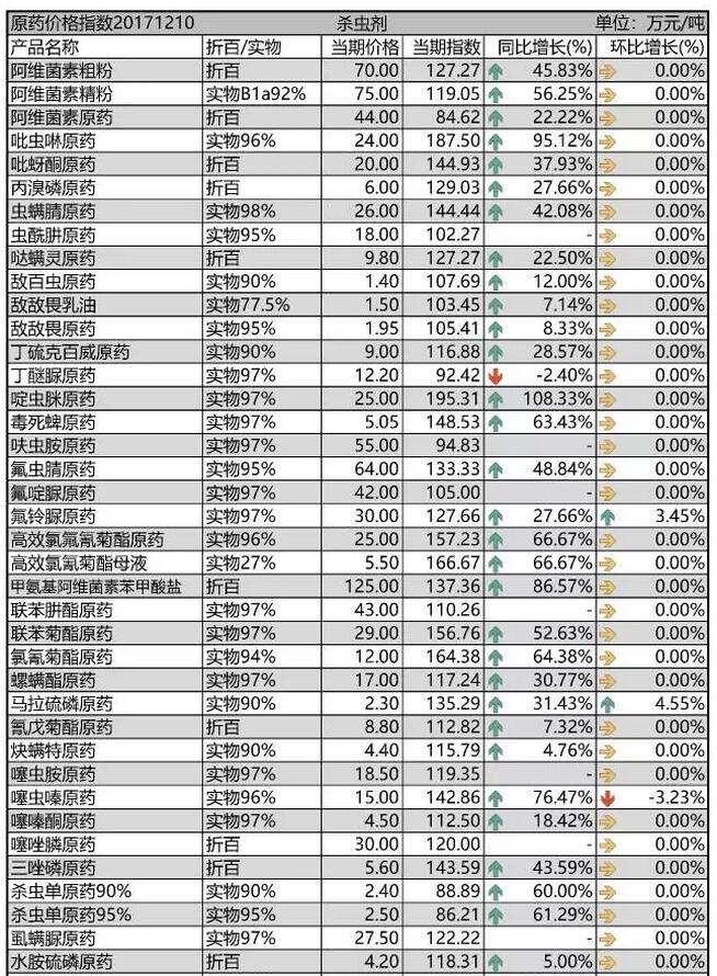12月初國內(nèi)農(nóng)藥原藥殺蟲劑價格行情