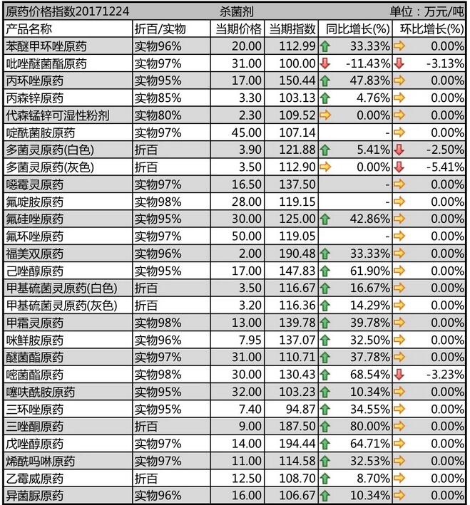 12月初國內(nèi)農(nóng)藥原藥殺菌劑價格行情