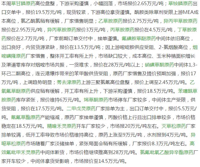 1月下旬農(nóng)藥原藥除草劑市場行情