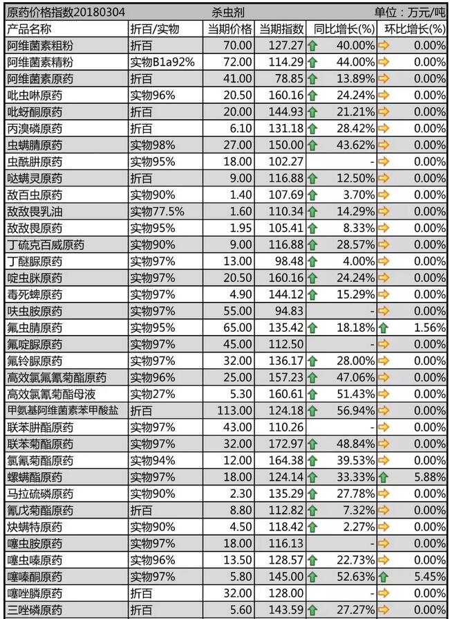 3月上旬國(guó)內(nèi)農(nóng)藥原藥殺蟲劑價(jià)格行情