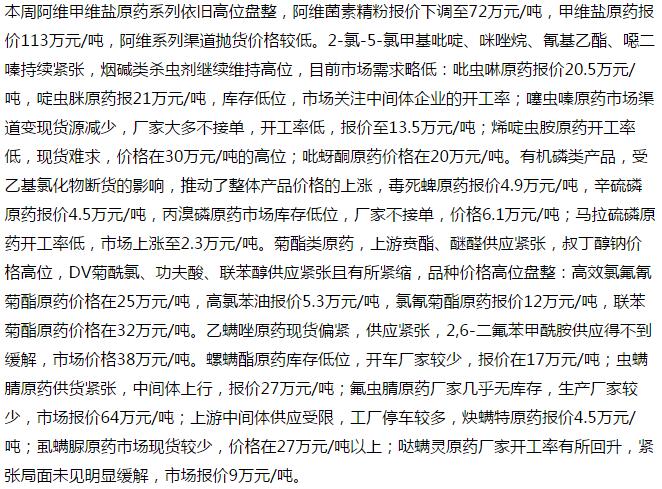 2月初國(guó)內(nèi)農(nóng)藥原藥殺蟲劑市場(chǎng)行情