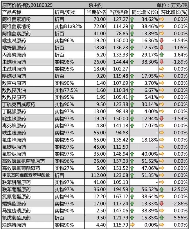 3月份國(guó)內(nèi)農(nóng)藥原藥殺蟲(chóng)劑價(jià)格行情