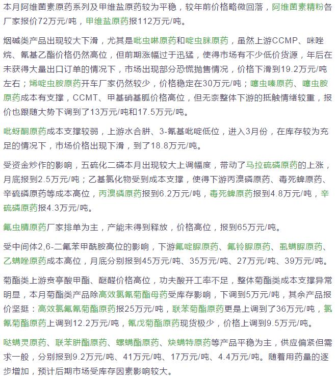 3月份國(guó)內(nèi)農(nóng)藥原藥除草劑價(jià)格行情