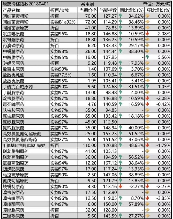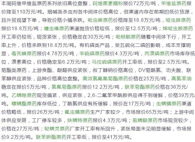 4月初國內(nèi)農(nóng)藥原藥殺蟲劑價格行情