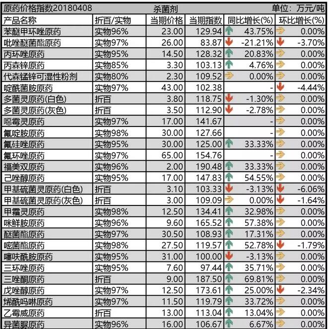 4月初國(guó)內(nèi)農(nóng)藥原藥殺菌劑價(jià)格行情