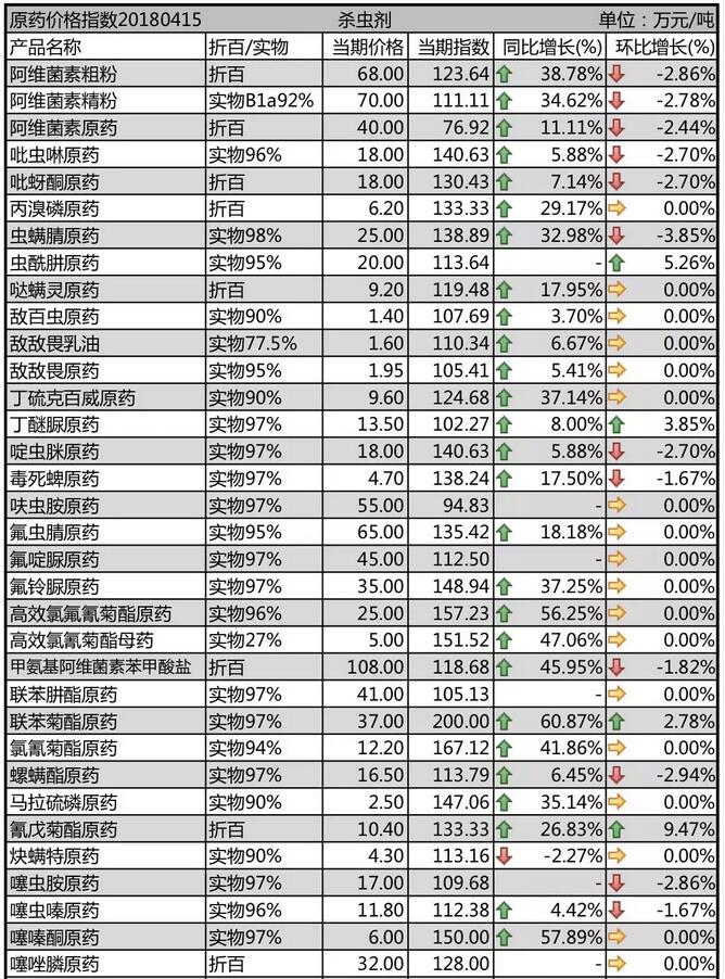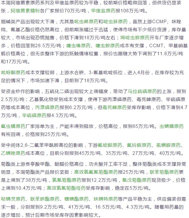 4月初國內(nèi)農(nóng)藥原藥殺蟲劑價格行情