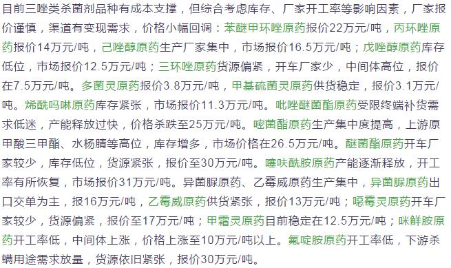 4月下旬國(guó)內(nèi)農(nóng)藥原藥殺菌劑市場(chǎng)行情