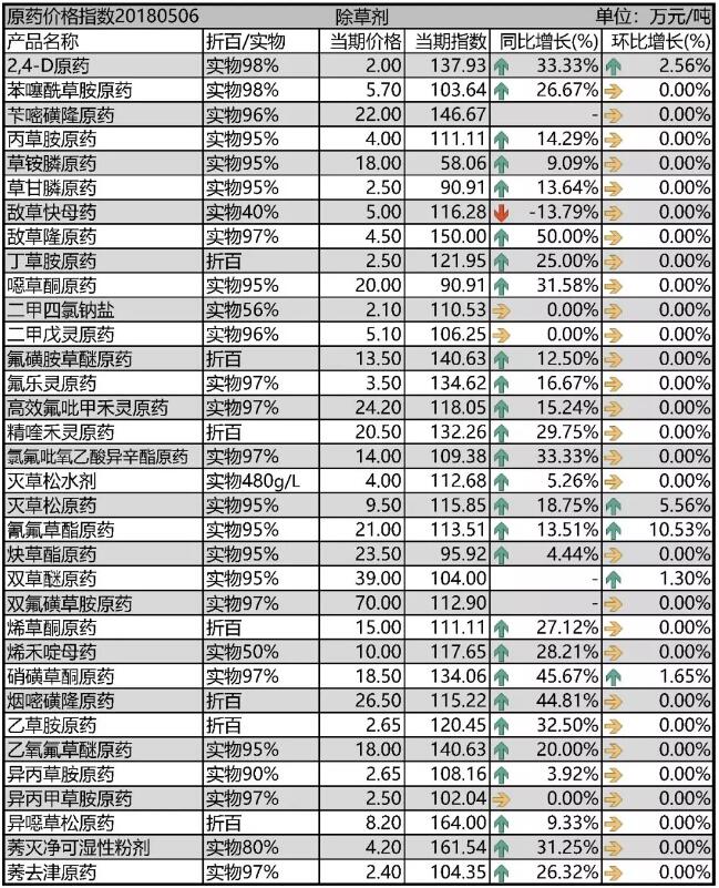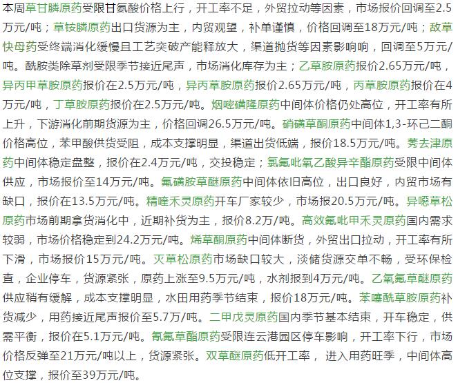 5月上旬國(guó)內(nèi)農(nóng)藥原藥除草劑市場(chǎng)行情