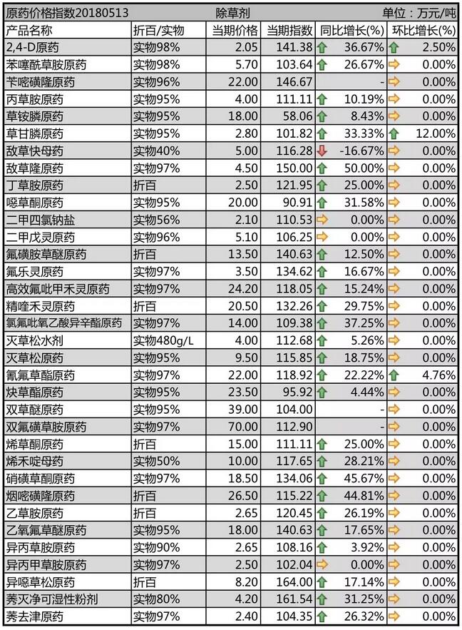 5月上旬國內農(nóng)藥原藥除草劑市場行情