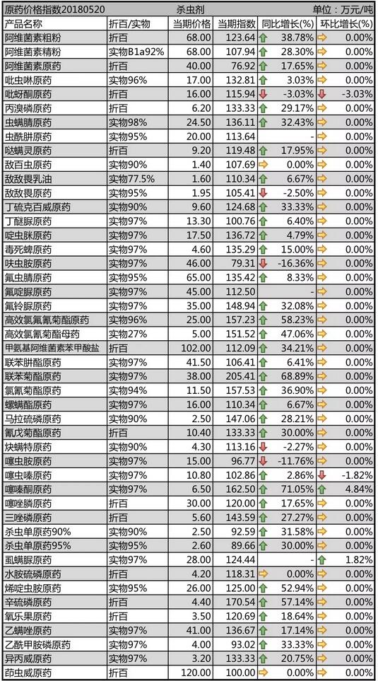 5月中旬國(guó)內(nèi)農(nóng)藥原藥殺蟲(chóng)劑價(jià)格行情