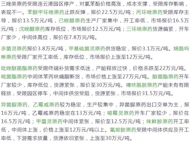 5月中旬國內(nèi)農(nóng)藥原藥殺菌劑價(jià)格行情