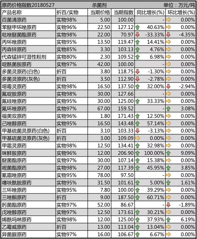 5月末國內(nèi)農(nóng)藥原藥殺菌劑價(jià)格行情