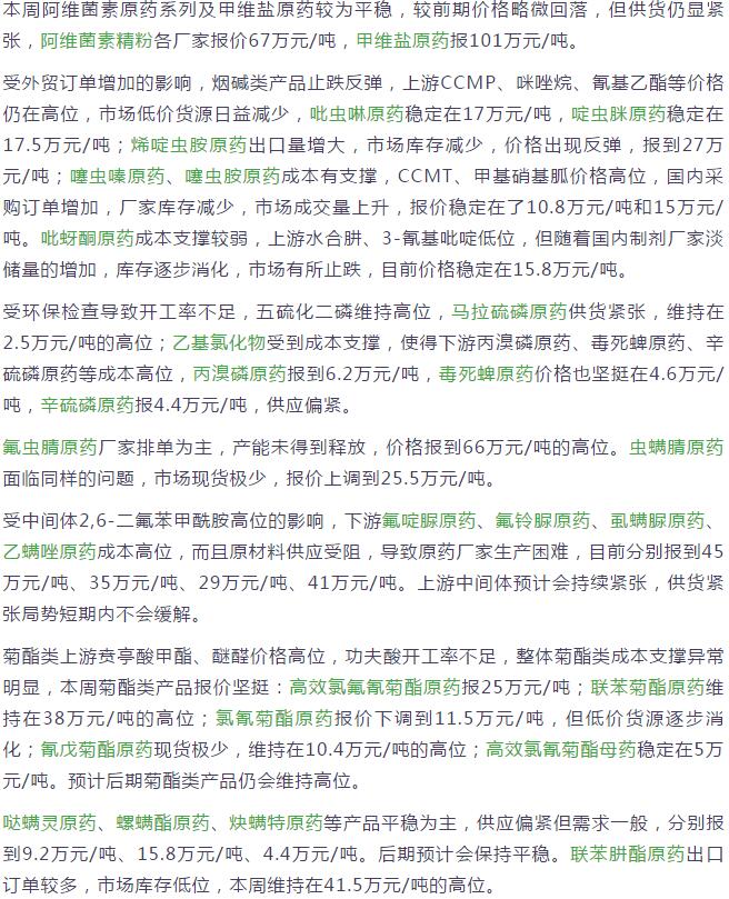 5月中旬國(guó)內(nèi)農(nóng)藥原藥殺蟲(chóng)劑價(jià)格行情