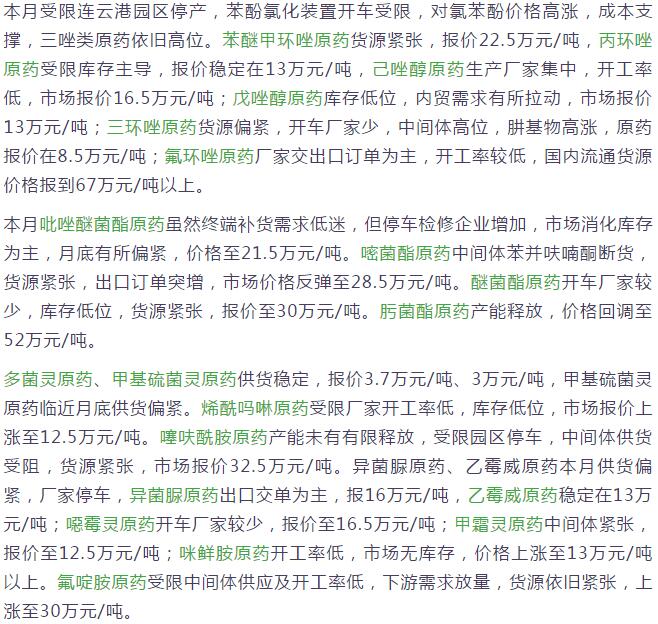 多款原藥貨源緊張價格提升