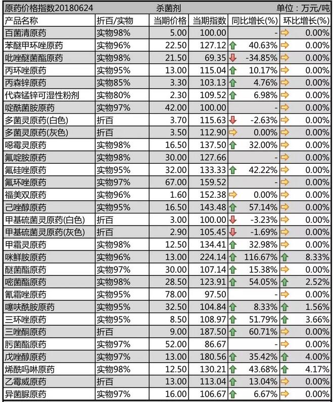 6月初國內(nèi)農(nóng)藥原藥殺菌劑價格行情