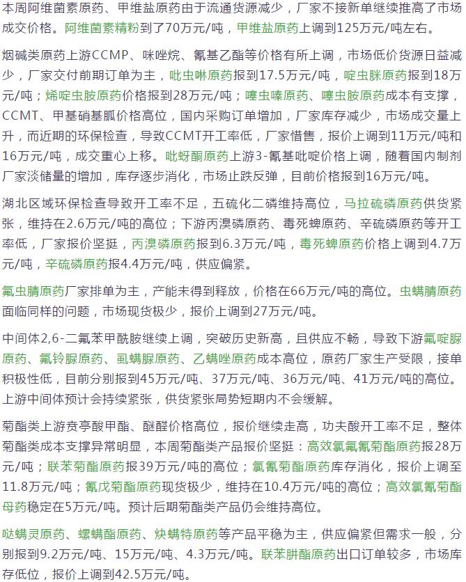 6月初國(guó)內(nèi)農(nóng)藥原藥殺蟲(chóng)劑價(jià)格行情