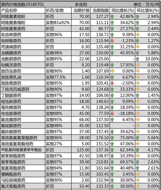 7月初國(guó)內(nèi)農(nóng)藥原藥殺蟲(chóng)劑行情走勢(shì)