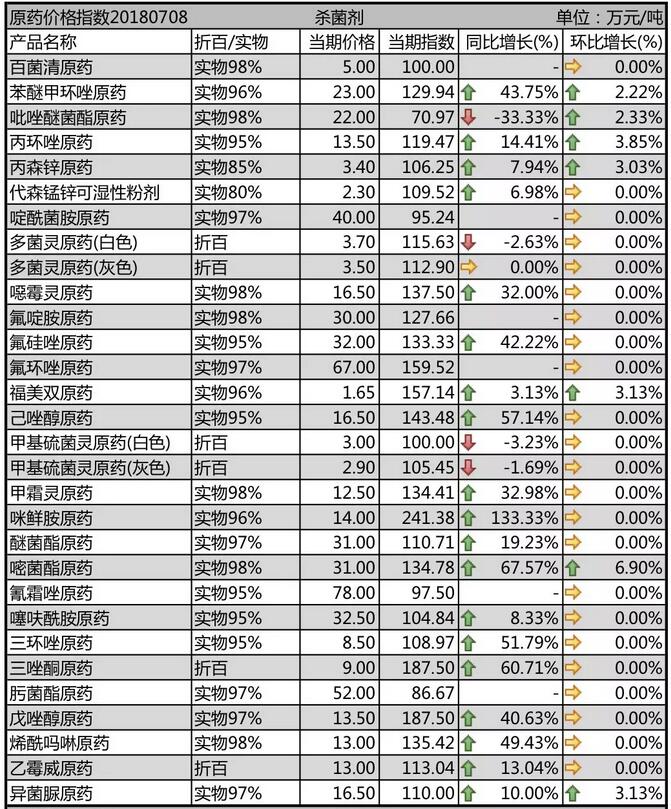 7月初國內(nèi)農(nóng)藥原藥殺菌劑行情走勢