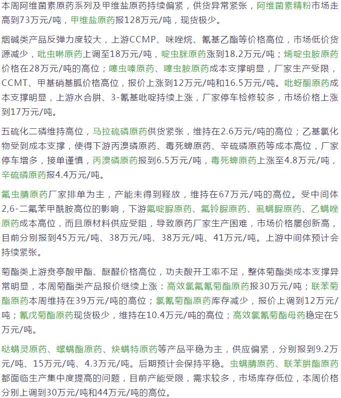 7月初國內(nèi)農(nóng)藥原藥殺蟲劑行情走勢