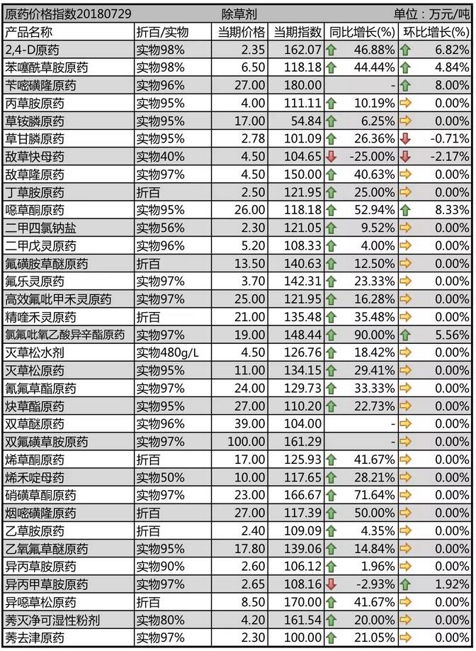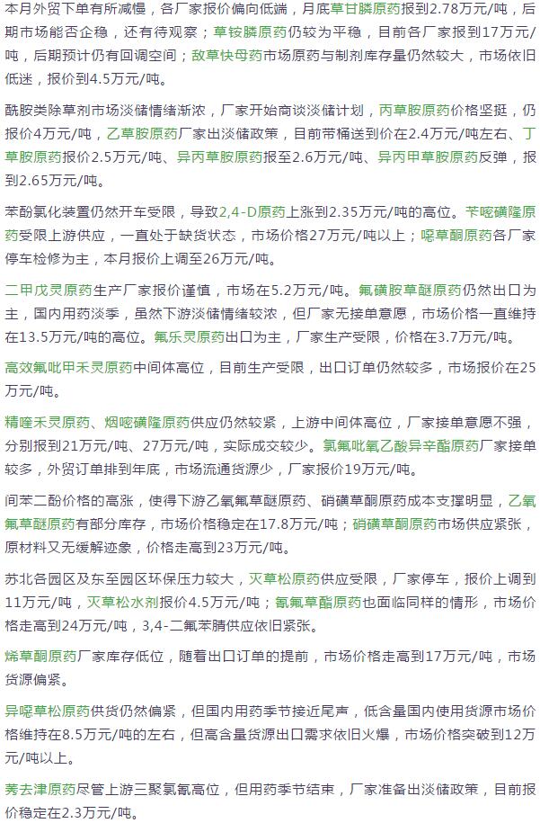 7月份國(guó)內(nèi)農(nóng)藥原藥除草劑市場(chǎng)行情走勢(shì)