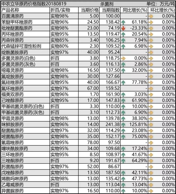 8月中旬國內(nèi)農(nóng)藥市場殺菌劑原藥價(jià)格走勢