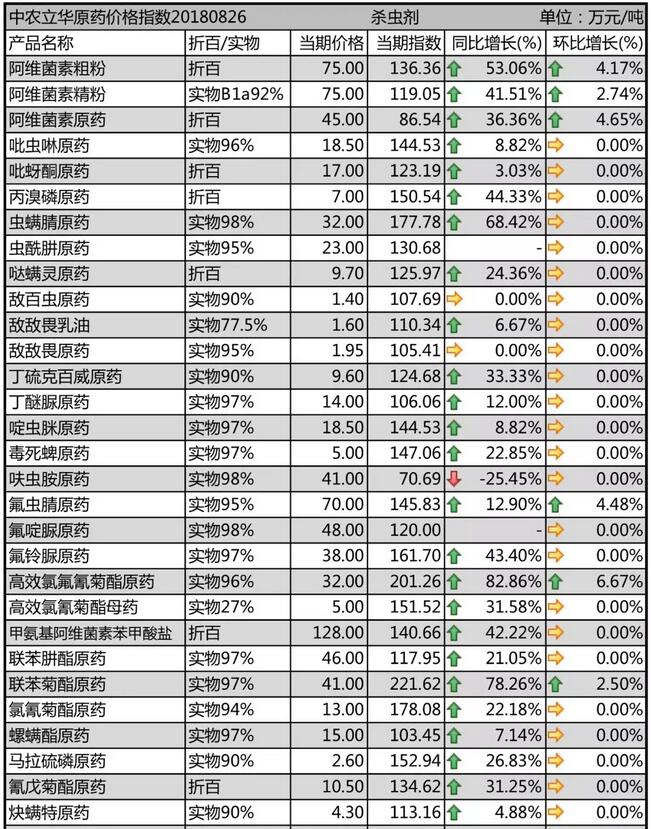8月末國內(nèi)農(nóng)藥原藥殺蟲劑市場行情走勢