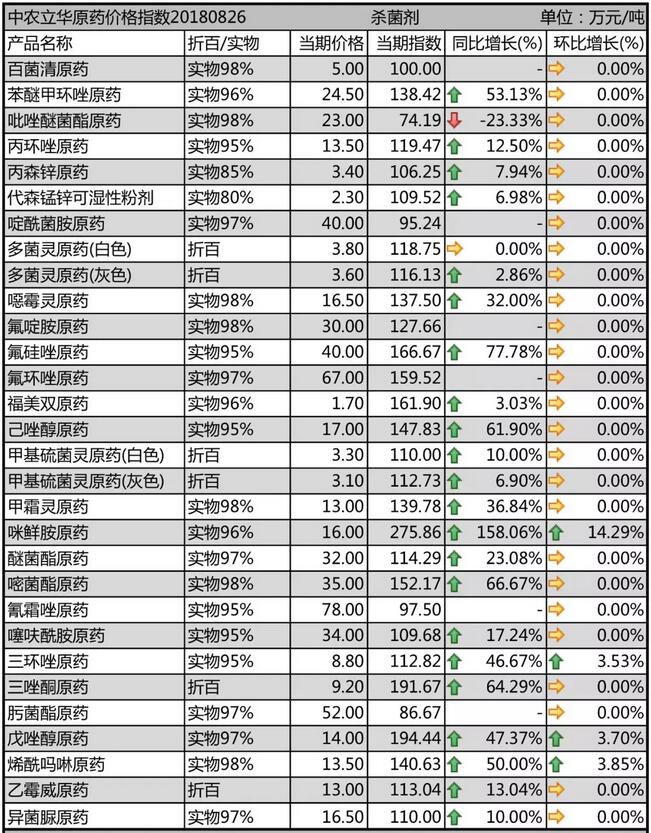 8月末國(guó)內(nèi)農(nóng)藥原藥殺菌劑市場(chǎng)行情走勢(shì)