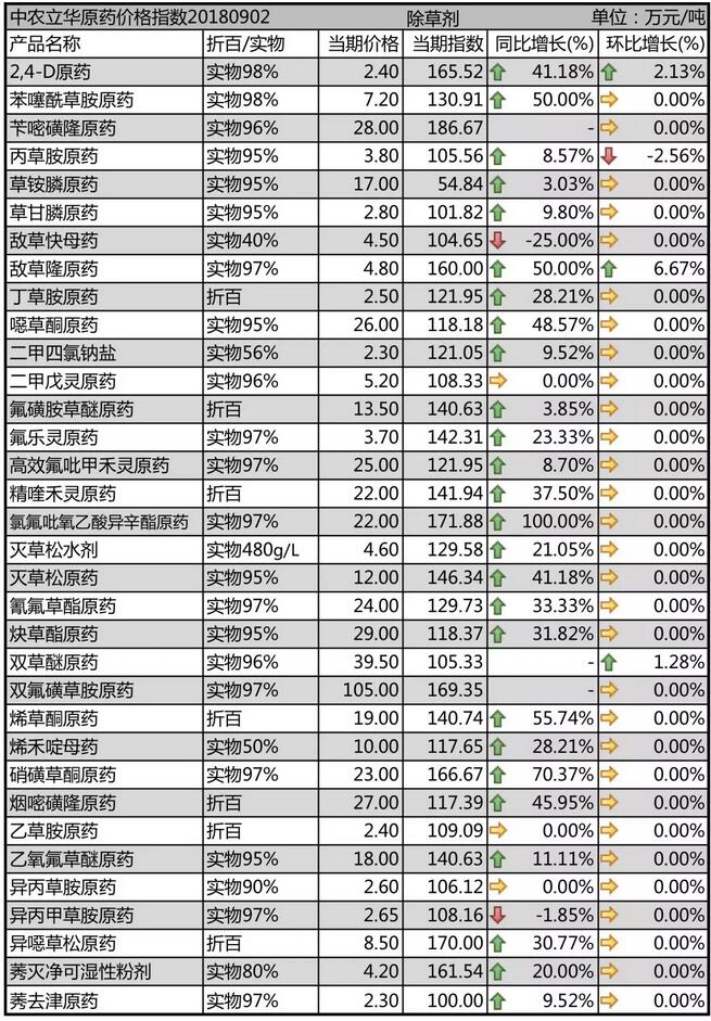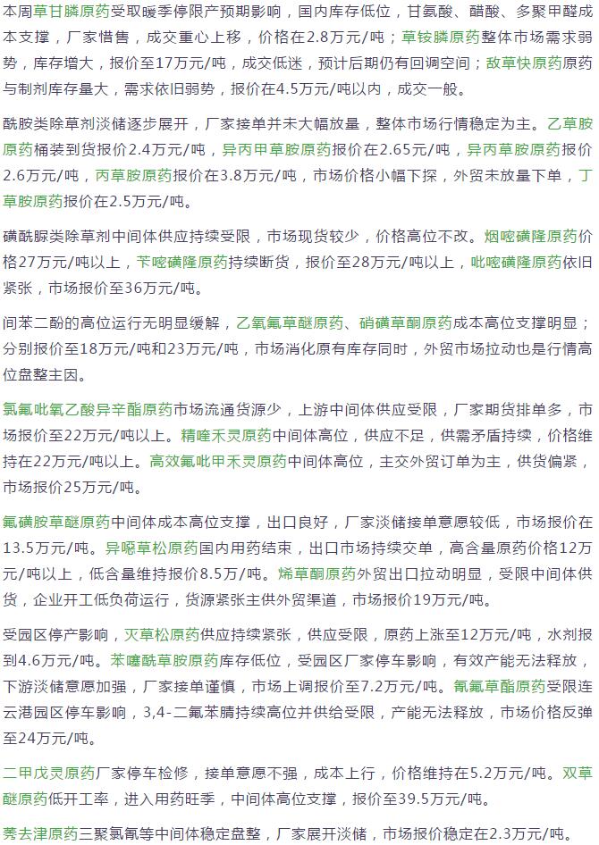 8月末國(guó)內(nèi)農(nóng)藥原藥除草劑市場(chǎng)行情走勢(shì)