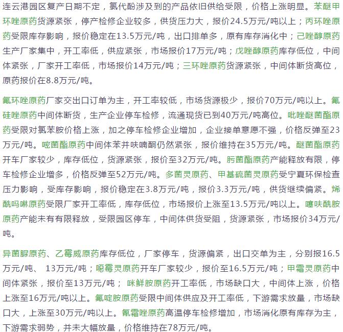 8月末國內(nèi)農(nóng)藥原藥殺菌劑市場行情走勢