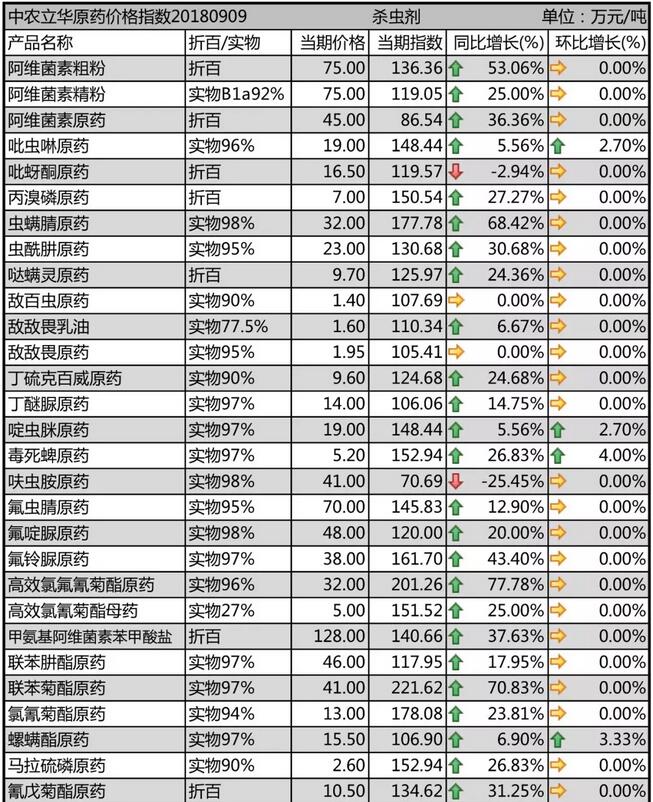 9月初國內(nèi)農(nóng)藥原藥殺蟲劑市場價格走勢