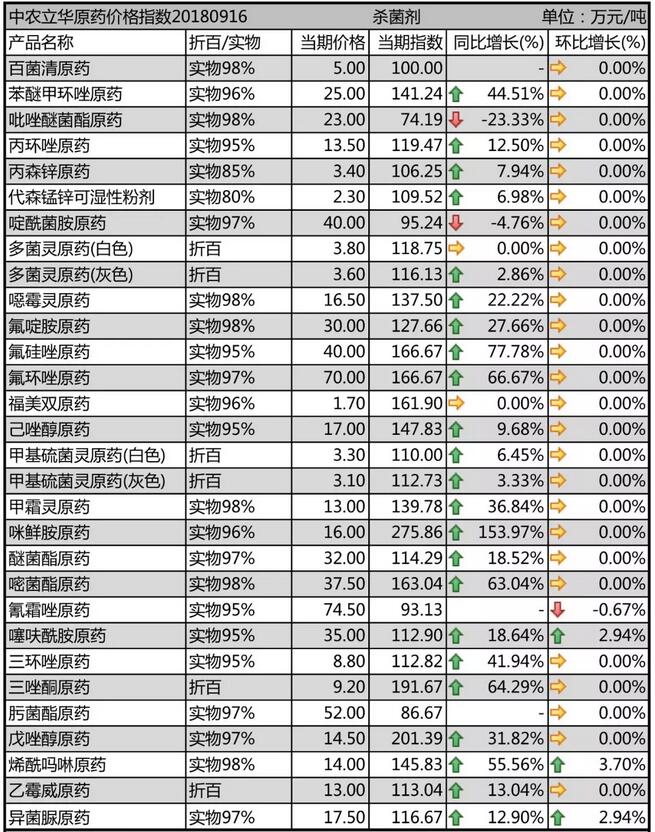 9月中旬國內(nèi)農(nóng)藥原藥殺菌劑價(jià)格走勢