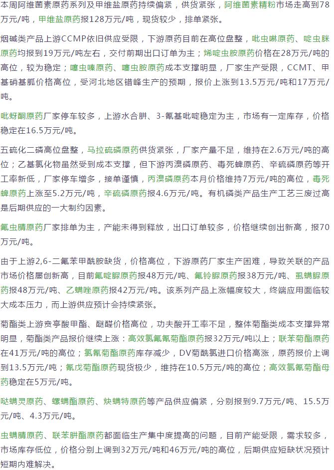 9月下旬國內(nèi)農(nóng)藥原藥殺蟲劑價(jià)格走勢