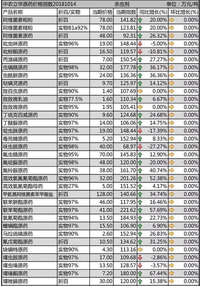 10月中旬國內(nèi)農(nóng)藥原藥殺蟲劑市場行情走勢