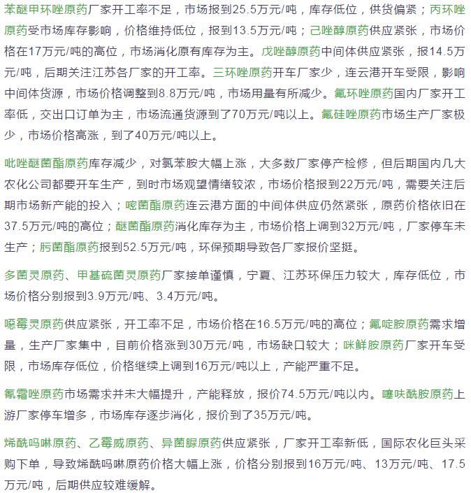 10月中旬國(guó)內(nèi)農(nóng)藥原藥殺菌劑市場(chǎng)行情走勢(shì)