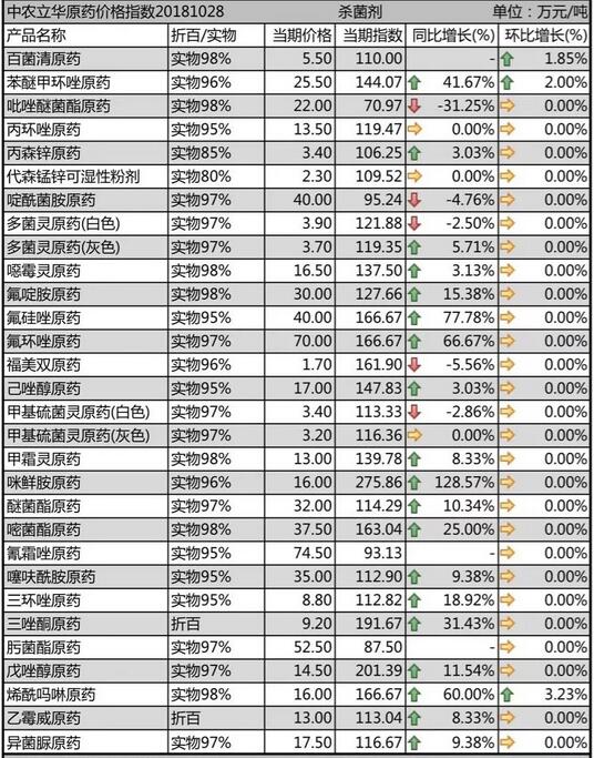 10月末國(guó)內(nèi)農(nóng)藥原藥殺菌劑價(jià)格走勢(shì)