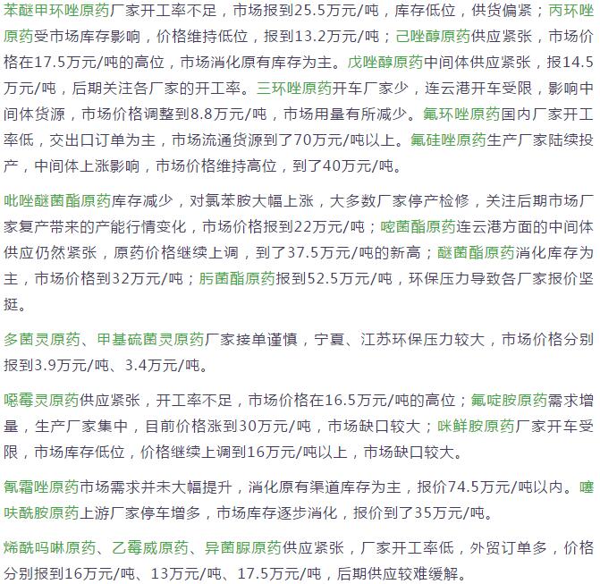 10月下旬國內(nèi)農(nóng)藥原藥殺菌劑價格走勢