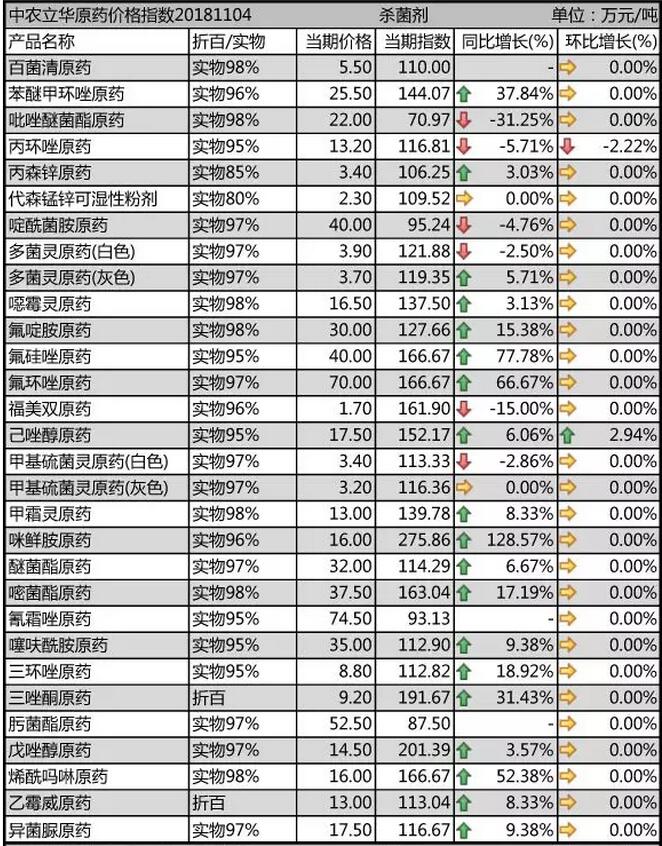 10月末國內(nèi)農(nóng)藥原藥殺菌劑價格走勢