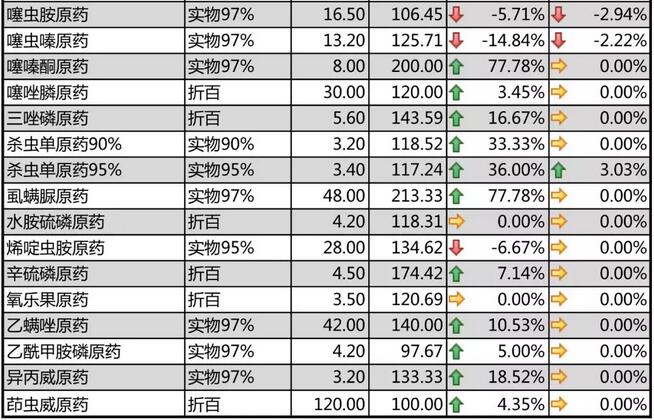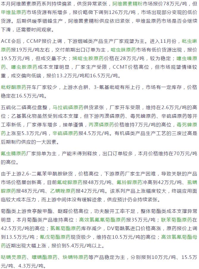 10月末國內(nèi)農(nóng)藥原藥殺蟲劑價格走勢