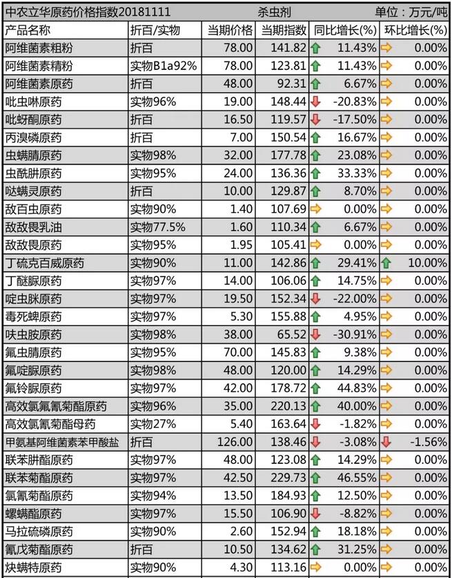 11月中旬國內(nèi)農(nóng)藥原藥殺蟲劑價格走勢