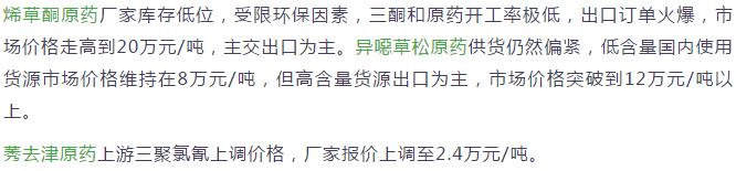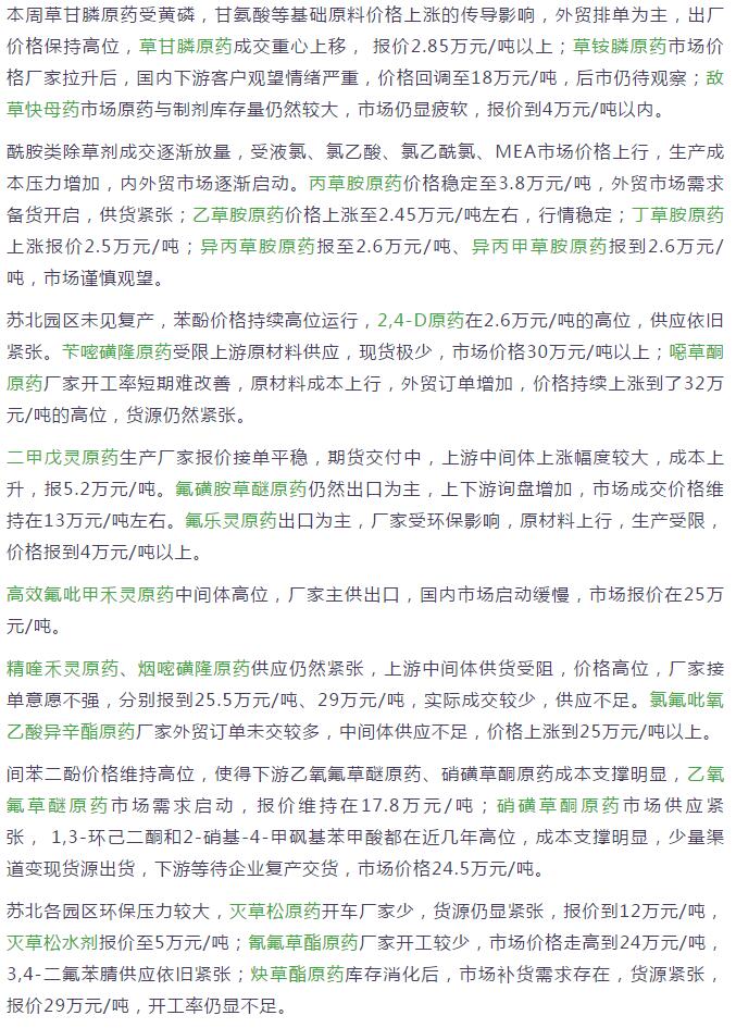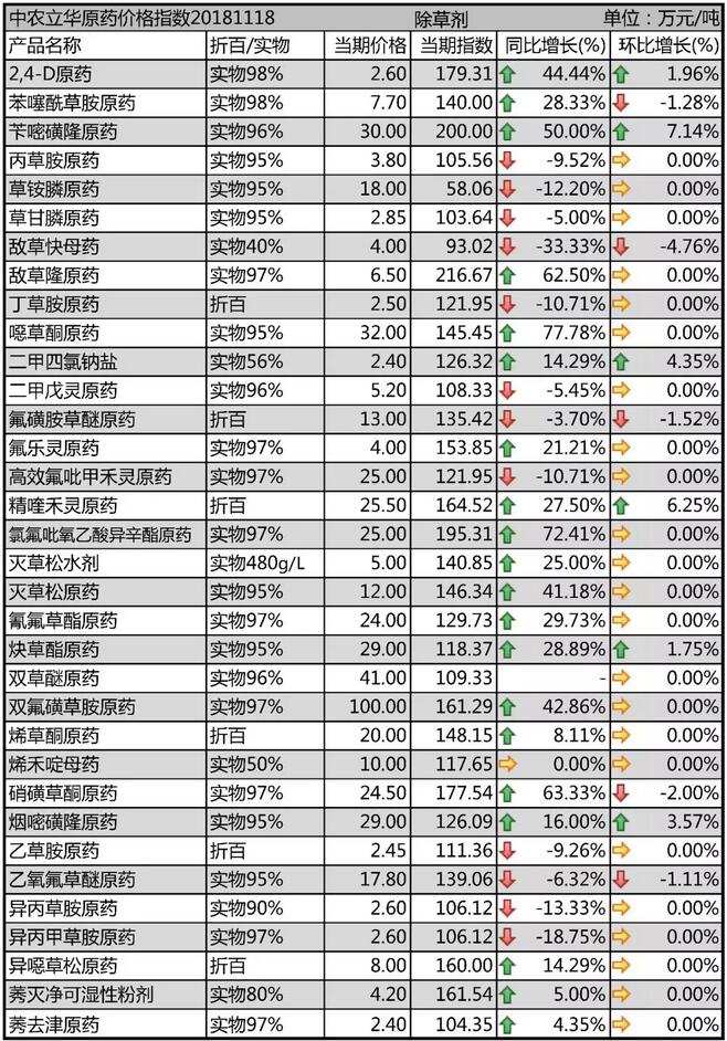11月中旬國內(nèi)農(nóng)藥原藥除草劑價(jià)格走勢
